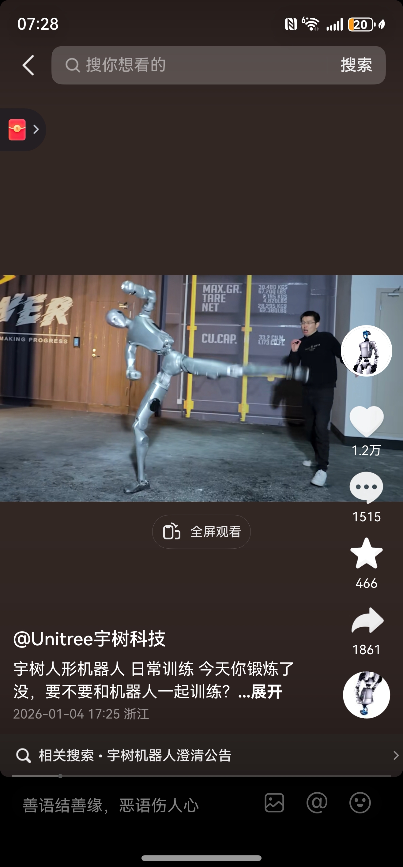 $绿的谐波(SH688017)$ 宇树科技的正面回答来了,这是今天17点30宇树科技官方发的视频,一脚踢碎谎言。