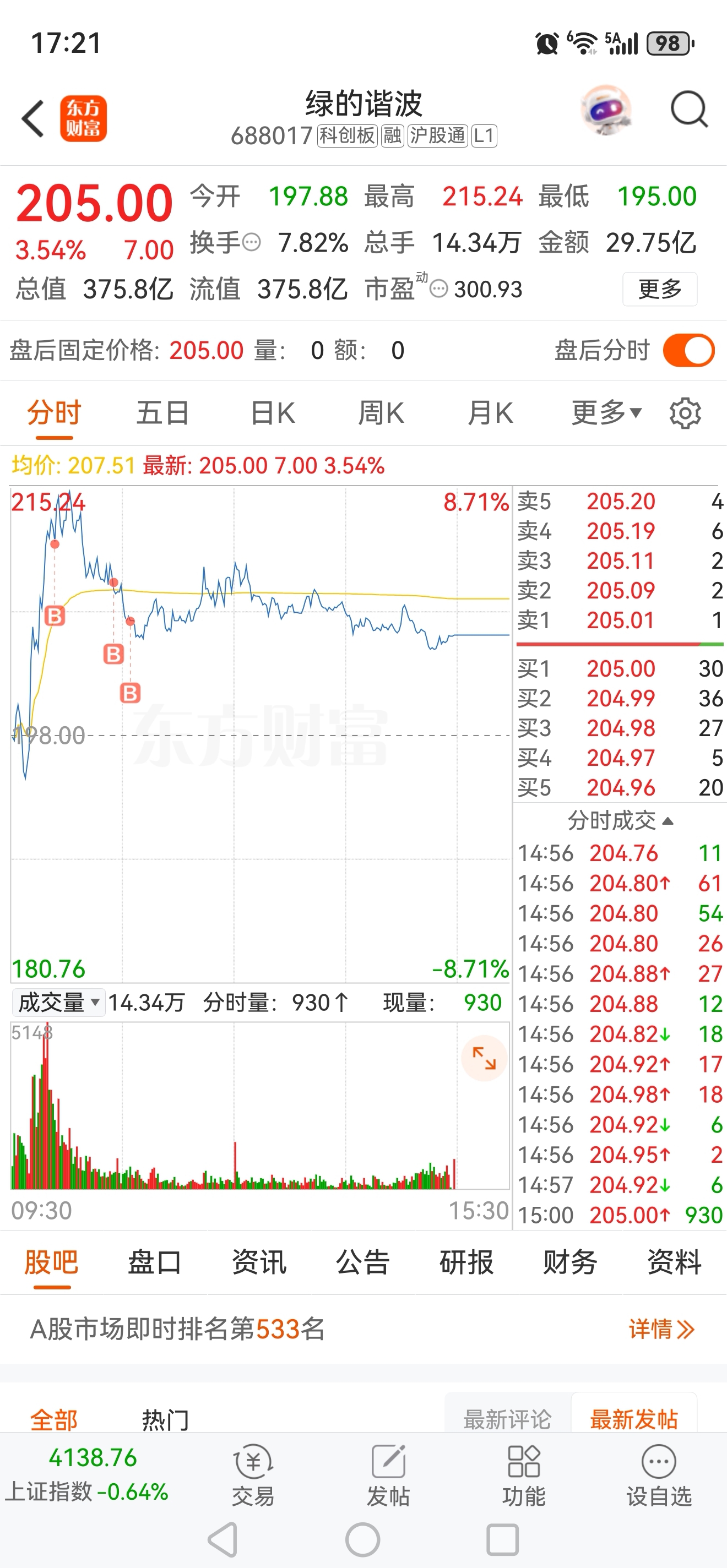 $绿的谐波(SH688017)$ 追高了