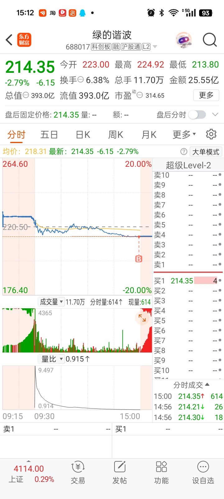 $绿的谐波(SH688017)$ 我2:57分挂214.14,收盘高于我的买入价,为什么会成交呢?有大神能解释一下吗?真的不懂