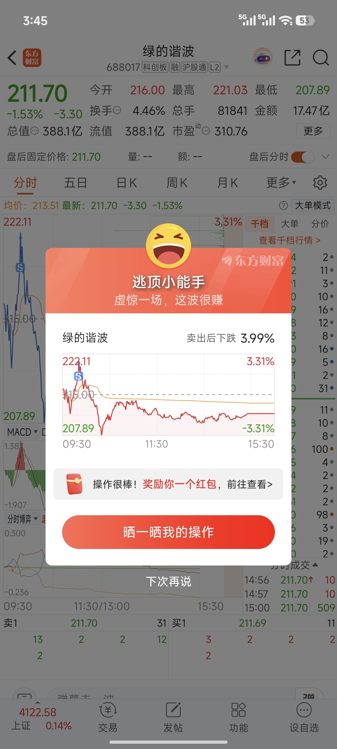 $绿的谐波(SH688017)$ 得到一枚奖状 太不容易了