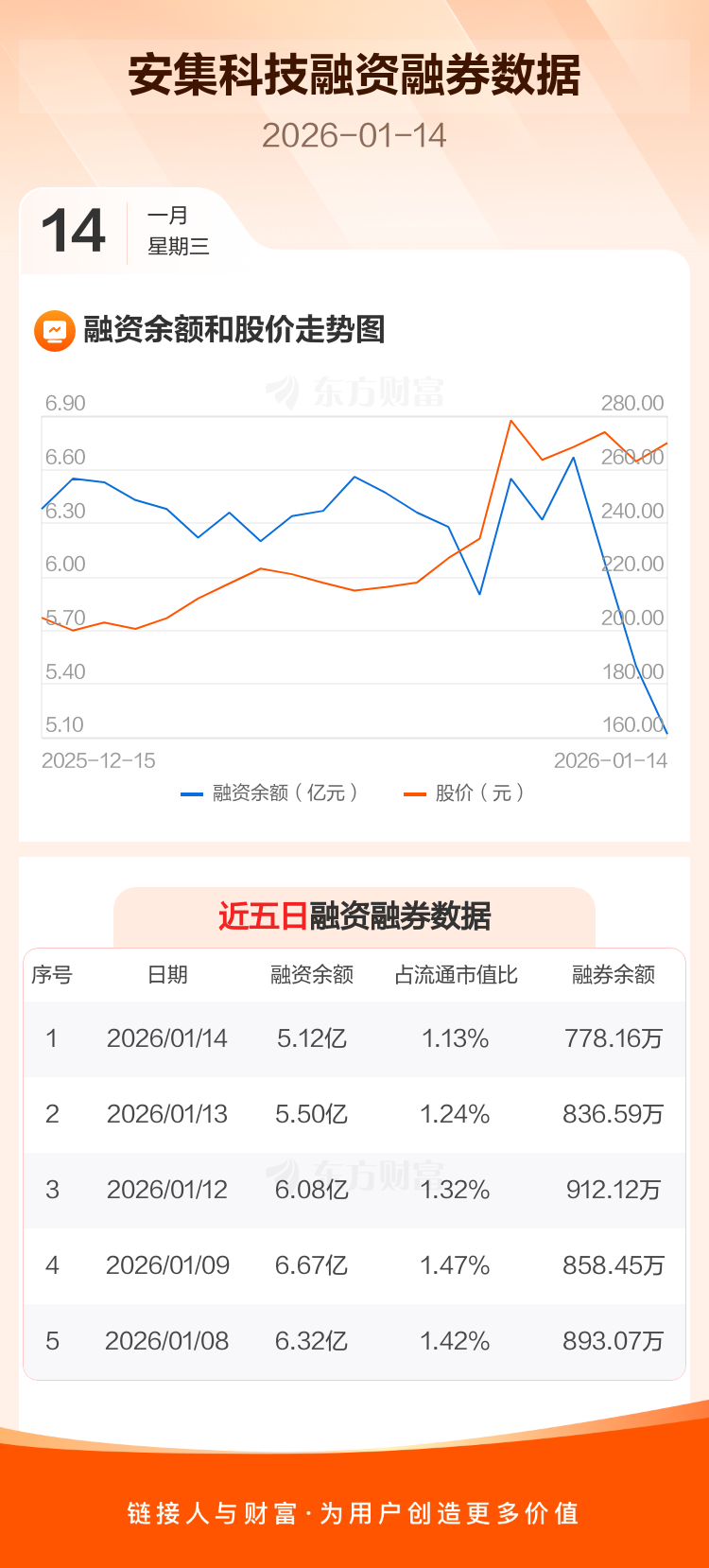交易所最新数据显示,安集科技于2026年1月14日获融资买入1.04亿元,融资偿还1.41亿元,当日融资净偿还3740.36万元。目前,该股融资余额5.12亿,占流通市值比例为1.13%。