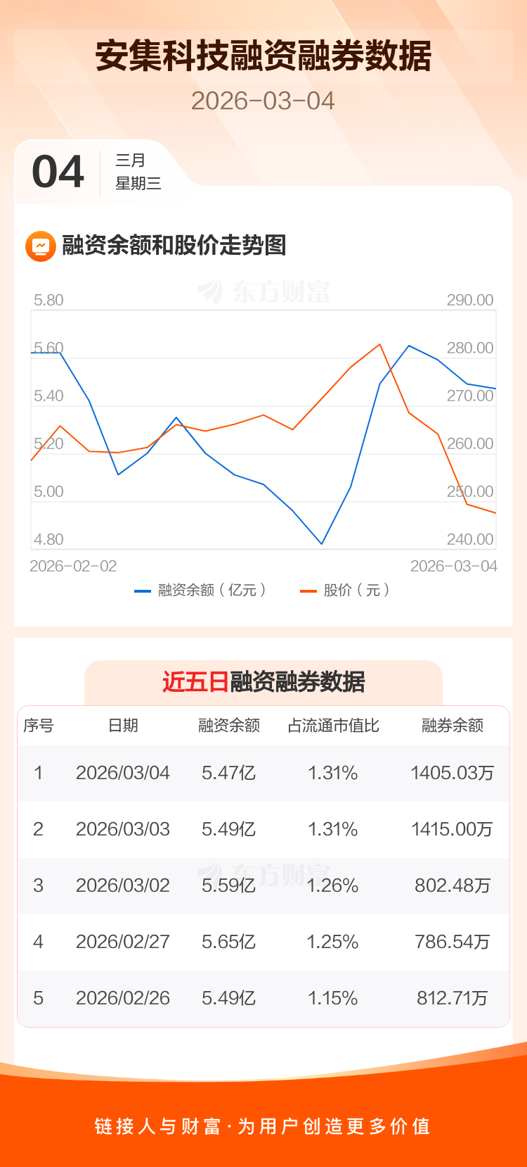 交易所最新数据显示,安集科技于2026年3月4日获融资买入3692.90万元,融资偿还3886.61万元,当日融资净偿还193.7万元。目前,该股融资余额5.47亿,占流通市值比例为1.31%。