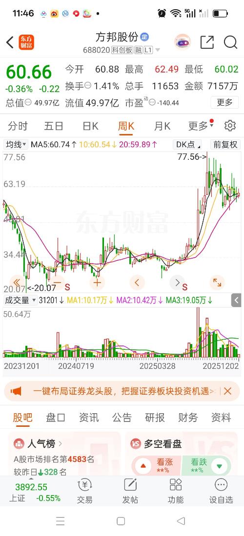 $方邦股份(SH688020)$  吃s一样,每天一点点就下来。跌的时候猛跌