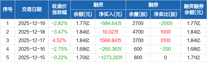 方邦股份:融资净偿还684.64万元,融资余额1.77亿元(12-19)