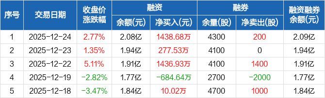 方邦股份:连续3日融资净买入累计3153.15万元(12-24)