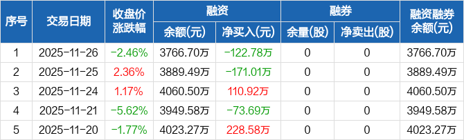 奥福科技:融资净偿还122.78万元,融资余额3766.7万元(11-26)