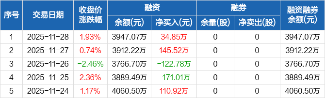 奥福科技:融资净买入34.85万元,融资余额3947.07万元(11-28)