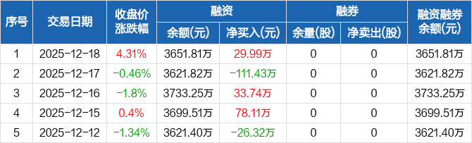 奥福科技:融资净买入29.99万元,融资余额3651.81万元(12-18)