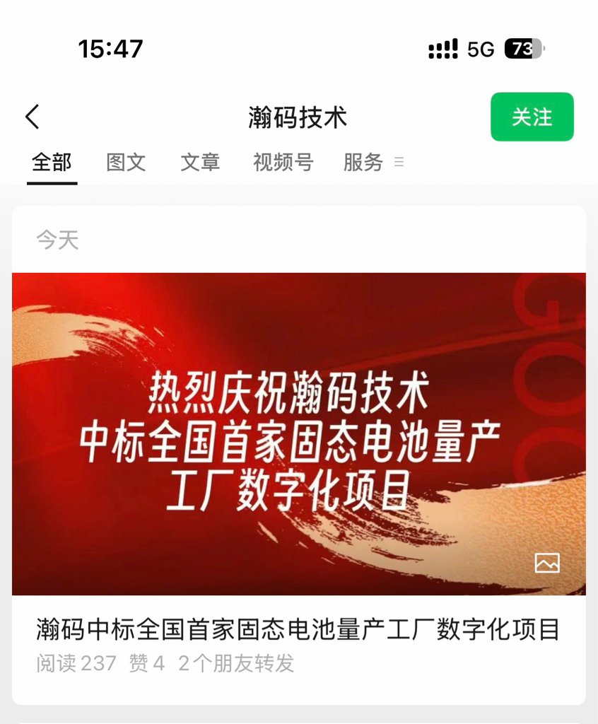 $瀚川智能(SH688022)$ 瀚码中标固态电池数字化项目