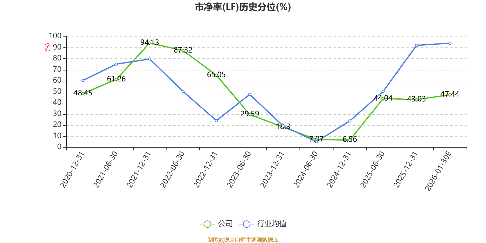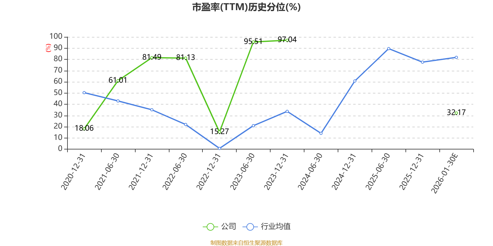 市盈率、市净率为负时,不显示当期分位数,会导致折线图中断。