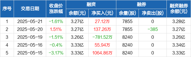 安恒信息:融资净买入27.12万元,融资余额3.27亿元(05-21)