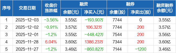 安恒信息:融资净偿还193.9万元,融资余额3.55亿元(12-03)