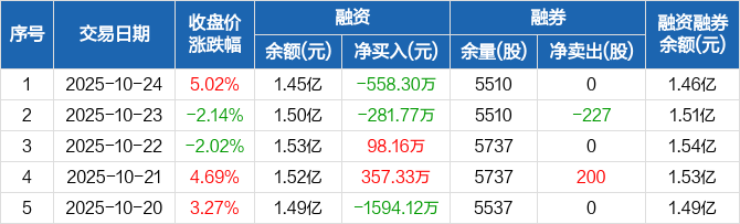 杰普特:融资净偿还558.3万元,融资余额1.45亿元(10-24)