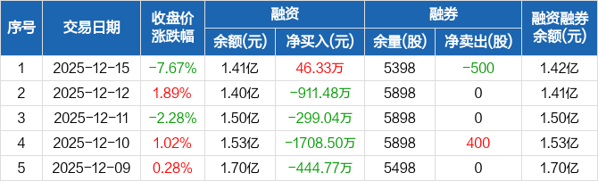 杰普特:融资净买入46.33万元,融资余额1.41亿元(12-15)