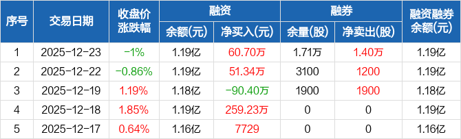 洁特生物:融资净买入60.7万元,融资余额1.19亿元(12-23)