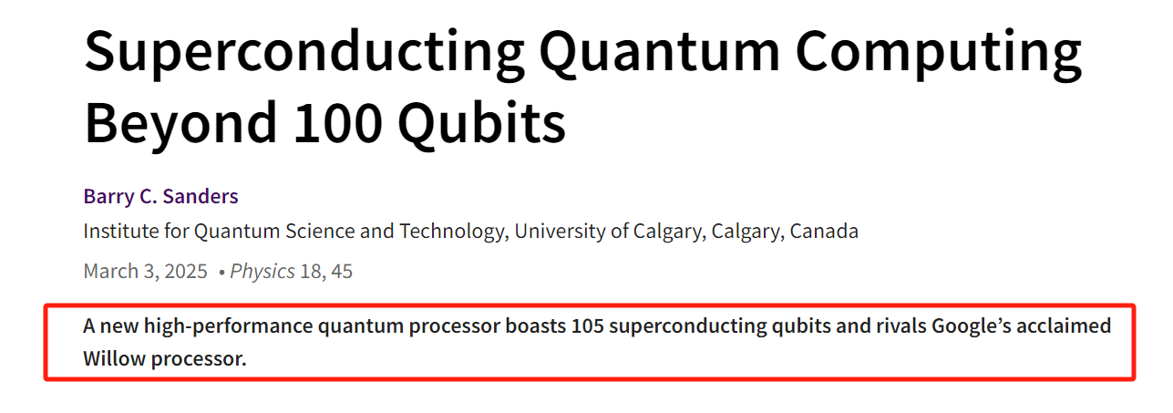 《物理》杂志刊文:可与谷歌Willow处理器竞争