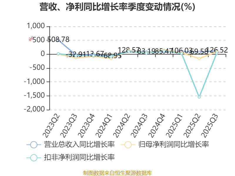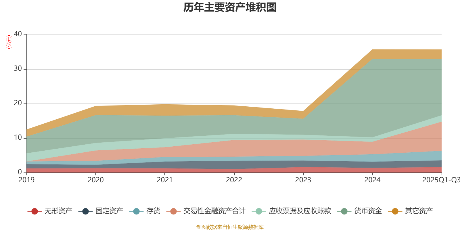 资产重大变化方面,截至2025年三季度末,公司货币资金较上年末减少28%,占公司总资产比重下降17.8个百分点;交易性金融资产合计较上年末增加132.86%,占公司总资产比重上升13.53个百分点;存货较上年末增加29.21%,占公司总资产比重上升1.77个百分点;应收票据及应收账款较上年末增加43.29%,占公司总资产比重上升1.57个百分点。