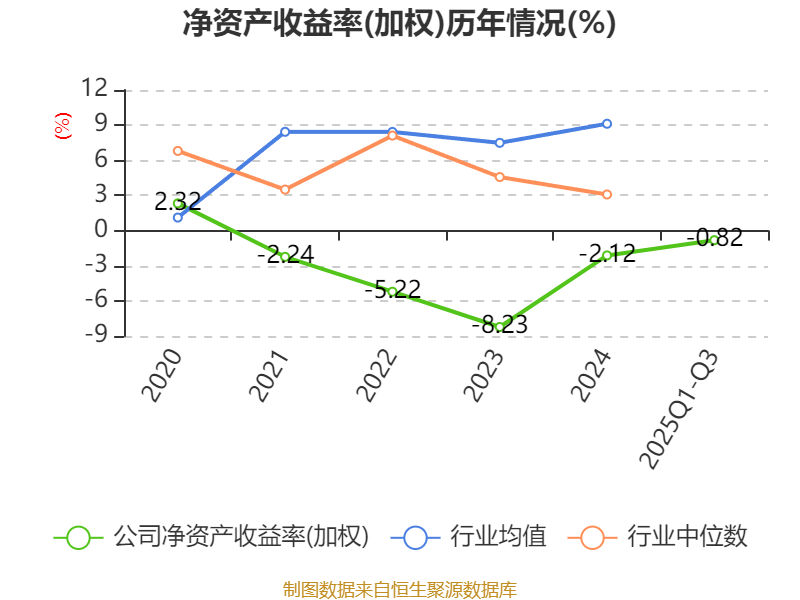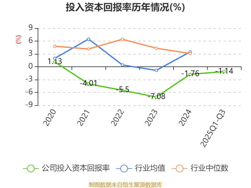 盈利能力方面, 2025年前三季度公司加权平均净资产收益率为-0.82%,同比上升2.9个百分点。公司2025年前三季度投入资本回报率为-1.14%,较上年同期上升3.25个百分点。