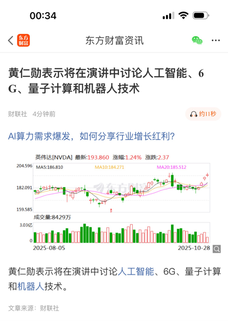黄仁勋表示将在演讲中讨论人工智能、6G、量子计算和机器人技术。