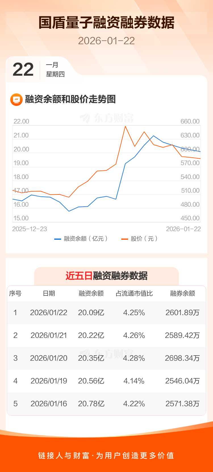 交易所最新数据显示,国盾量子于2026年1月22日获融资买入1.40亿元,融资偿还1.44亿元,当日融资净偿还408.5万元。目前,该股融资余额20.09亿,占流通市值比例为4.25%。