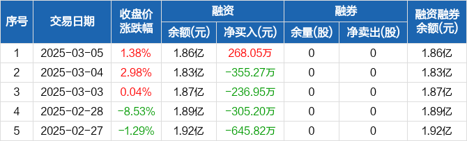 沃尔德:融资净买入268.05万元,融资余额1.86亿元(03-05)
