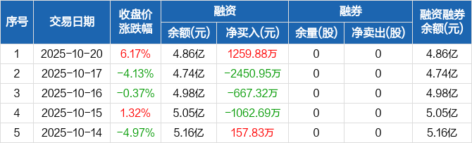 沃尔德:融资净买入1259.88万元,融资余额4.86亿元(10-20)
