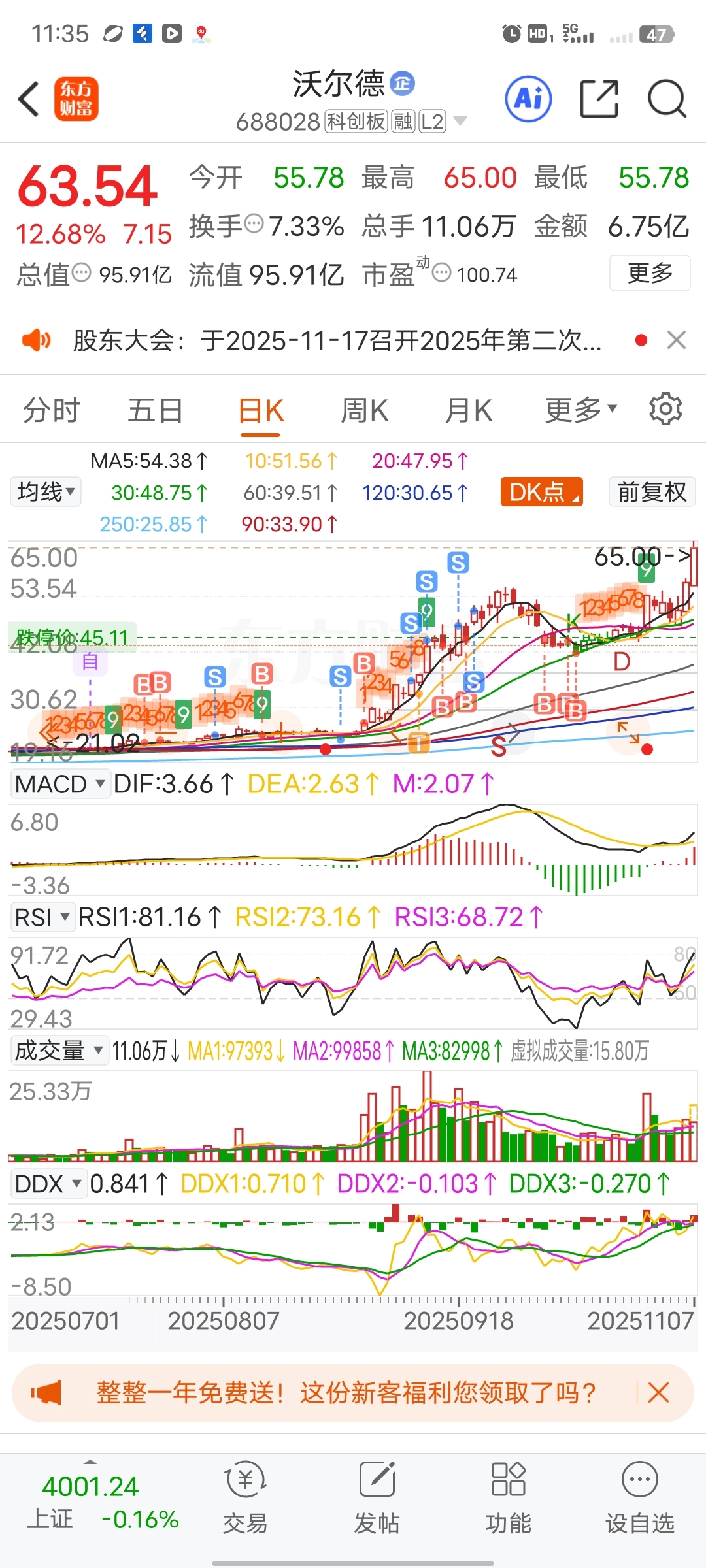 $沃尔德(SH688028)$ 不舍得卖了