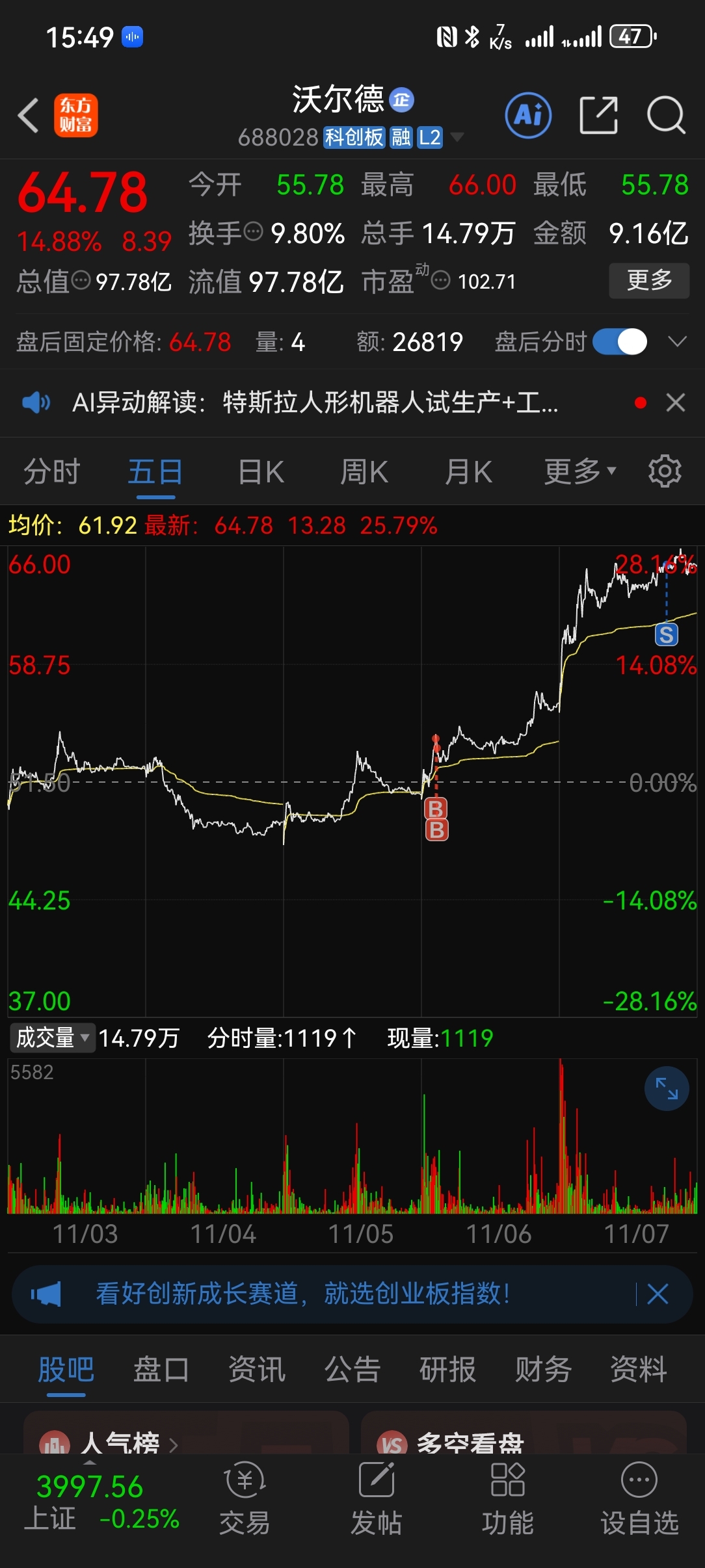 $沃尔德(SH688028)$ 64.9清仓。随你怎么玩。