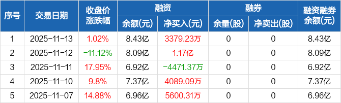 沃尔德:融资余额8.43亿元,创历史新高(11-13)