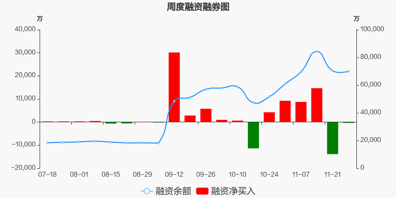 沃尔德本周(2025/11/24-2025/11/28)累计涨幅达4.12%,截至11月28日最新股价报收67.00元。从增量上来看,11月24日至11月28日融资买入交易规模5.59亿元,融资偿还规模5.62亿元,期内融资净偿还350.13万元。从存量上来看,截止11月30日,沃尔德融资融券余额7.01亿元,其中融资余额规模7.01亿元,融券余额规模0元。