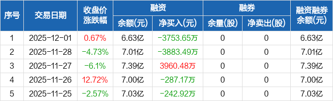 沃尔德:融资净偿还3753.65万元,融资余额6.63亿元(12-01)