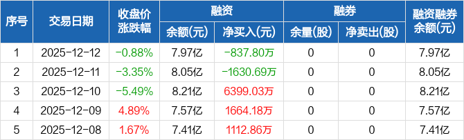 沃尔德:融资净偿还837.8万元,融资余额7.97亿元(12-12)