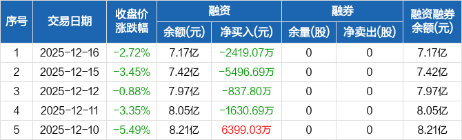 沃尔德:连续4日融资净偿还累计1.04亿元(12-16)