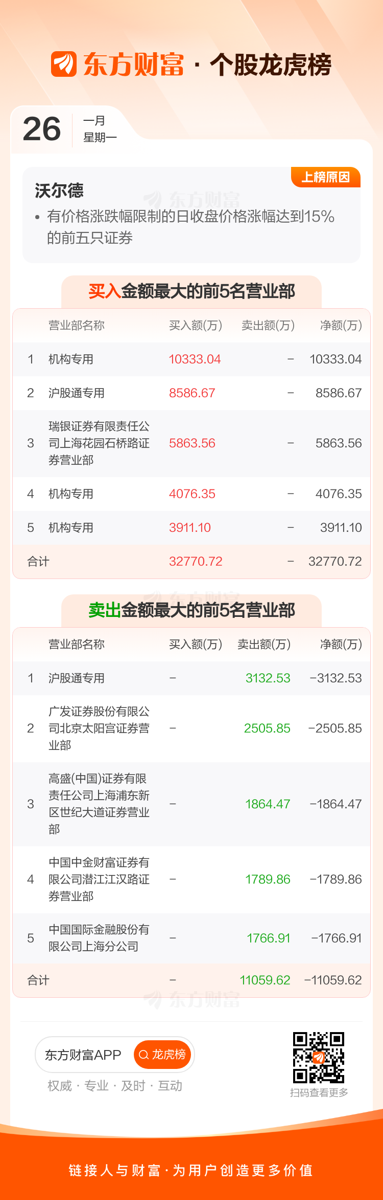 沃尔德(688028)龙虎榜数据(01-26)