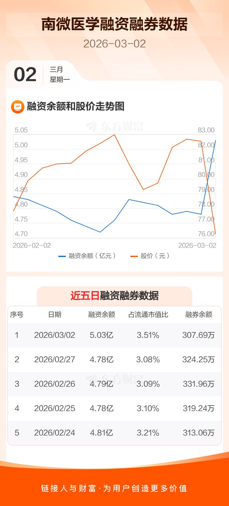 交易所最新数据显示,南微医学于2026年3月2日获融资买入4447.37万元,融资偿还1931.49万元,当日融资净买入2515.88万元。目前,该股融资余额5.03亿,占流通市值比例为3.51%。