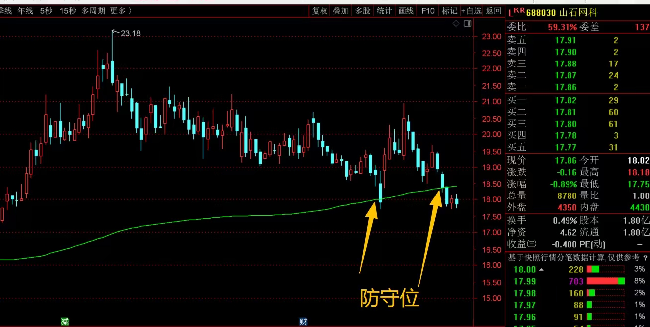 $山石网科(SH688030)$ 近期走势比较弱,主要是回落调整下来,这几天跌破了大均线18.42位置附近的支撑,而前期回落触碰的时候是得到支撑的,所以这里接下来如果不能快速拉升起来站稳大均线,就要防着中期破位的风险了,大幅控制仓位应对优先等走稳再考虑回补仓位。#复盘记录# #炒股日记#