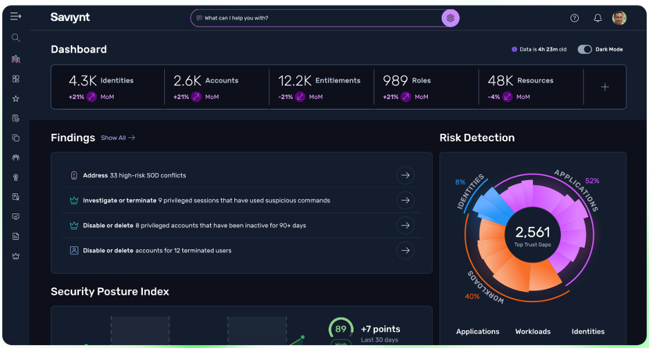 通过 AI/ML 驱动的自动化机制优化访问请求审批、权限授予/撤销 (provisioning / deprovisioning),以及持续监控与异常行为检测。对于采用高频、复杂访问请求及多系统互通的 AI 驱动场景尤为重要。Saviynt 表示其平台已可自动处理约 75% 的访问请求审批流程。