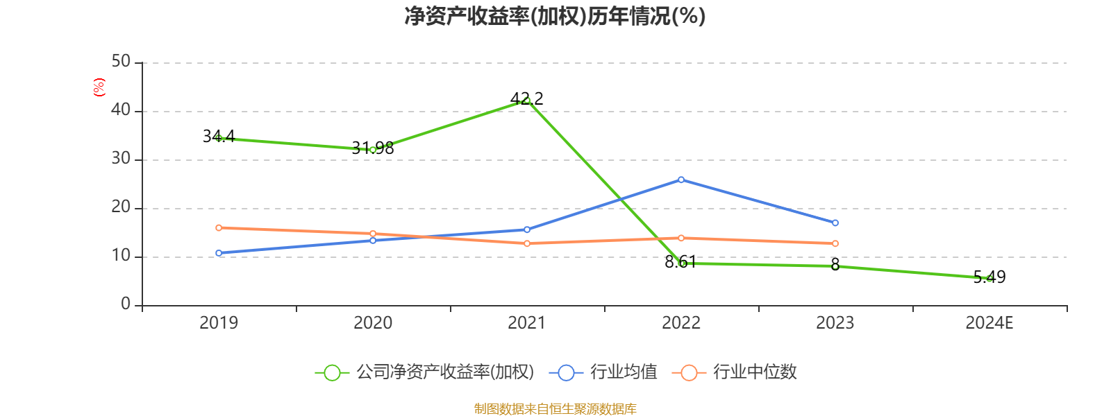 数据显示,2024年公司加权平均净资产收益率为5.49%,较上年同期下降2.51个百分点。