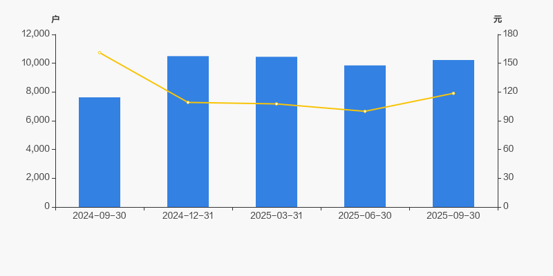 2024年9月30日至今,公司股东户数显著增长,区间涨幅为34.05%。2024年9月30日至2025年9月30日区间股价下降26.34%。