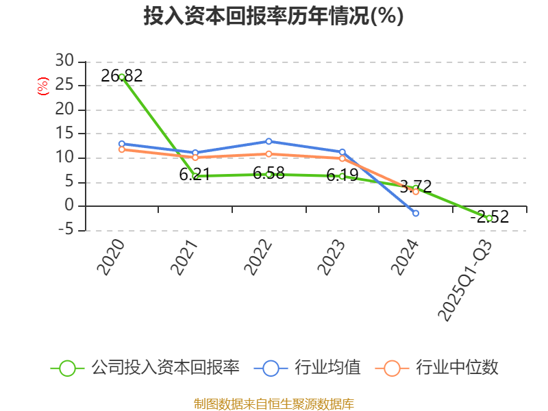 盈利能力方面, 2025年前三季度公司加权平均净资产收益率为-0.96%,同比下降4.85个百分点。公司2025年前三季度投入资本回报率为-2.52%,较上年同期下降5.14个百分点。