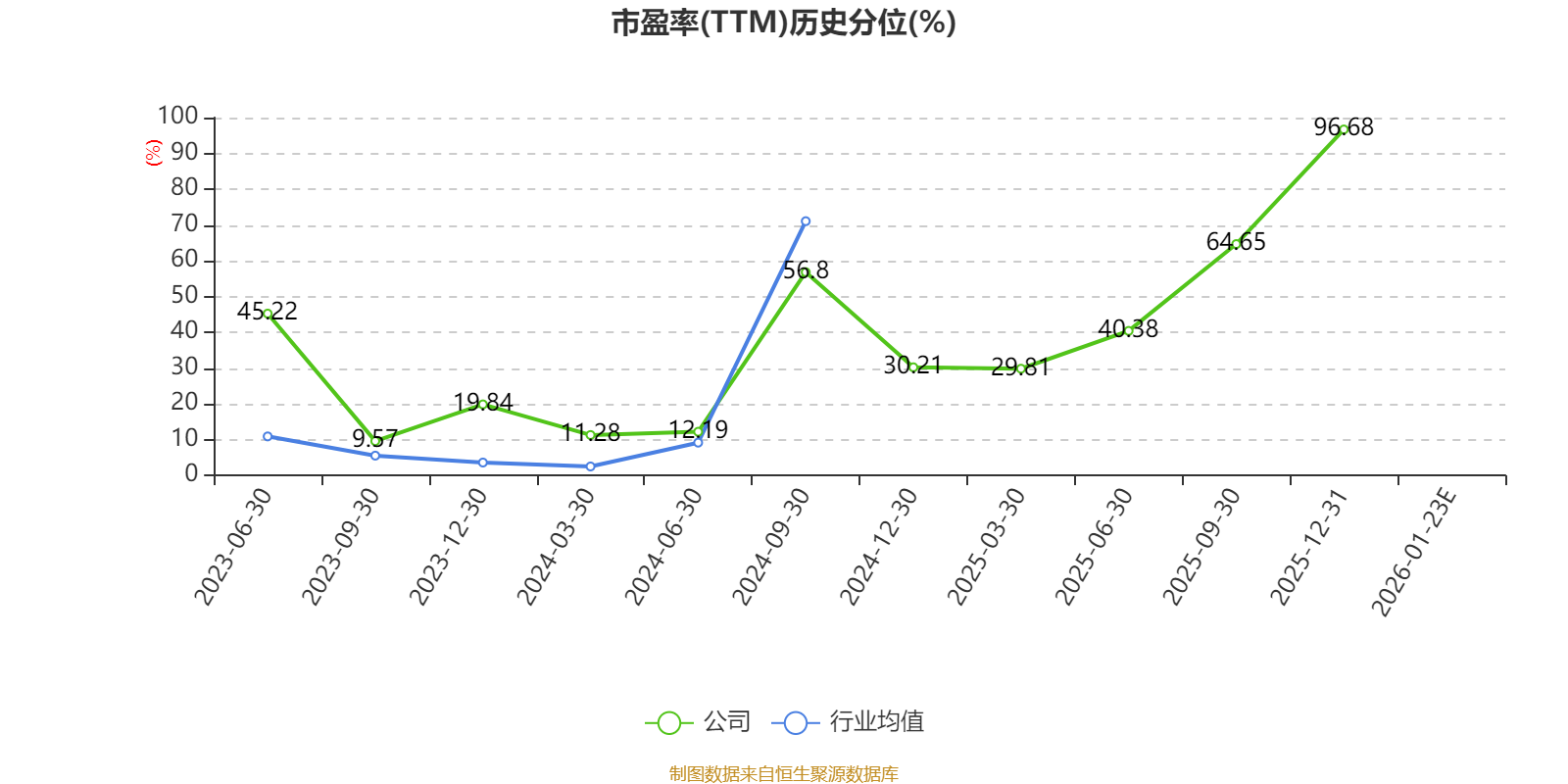 以本次披露业绩预告均值计算,公司近年市盈率(TTM)图如下所示: