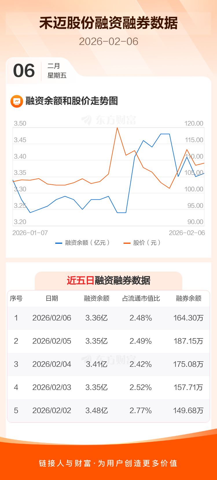 交易所最新数据显示,禾迈股份于2026年2月6日获融资买入2247.81万元,融资偿还2125.15万元,当日融资净买入122.66万元。目前,该股融资余额3.36亿,占流通市值比例为2.48%。