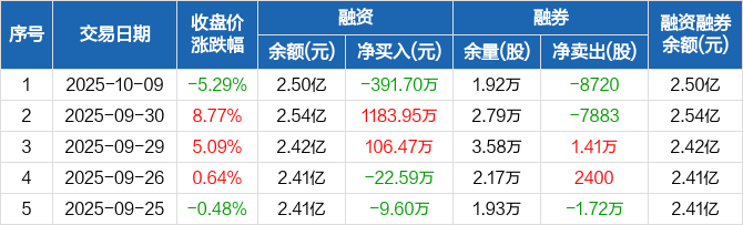 天宜新材:融资净偿还391.7万元,融资余额2.5亿元(10-09)