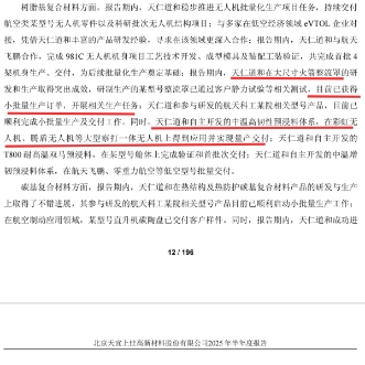 $天宜新材(SH688033)$根据年中报告树脂基复合材料在彩虹无人机上应用并量产交付。