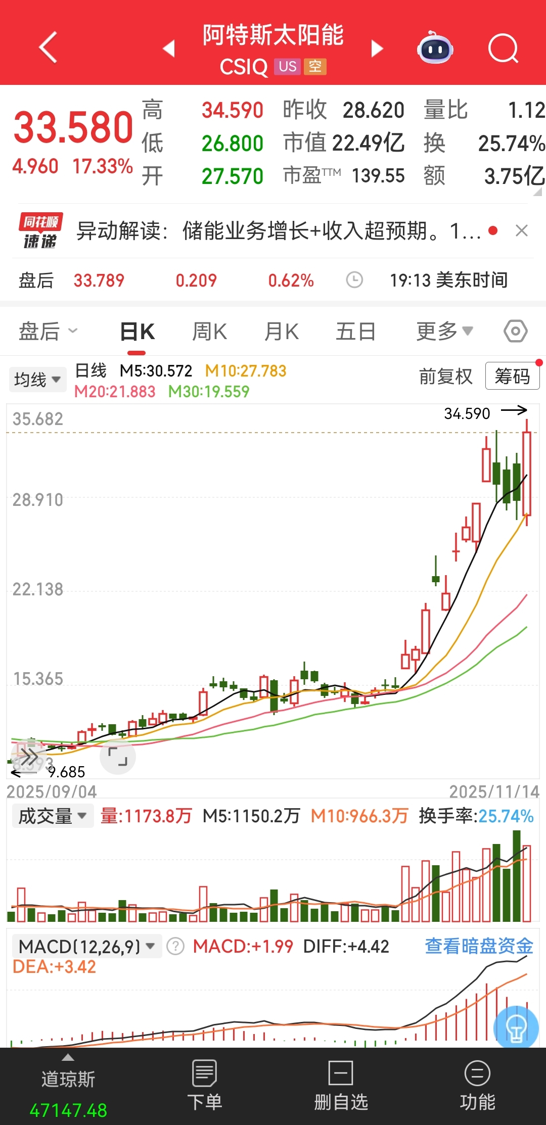 美股阿特斯大涨17个点。周一光伏储能产业行业大会利好预期。天宜自澄清公告叠加信心