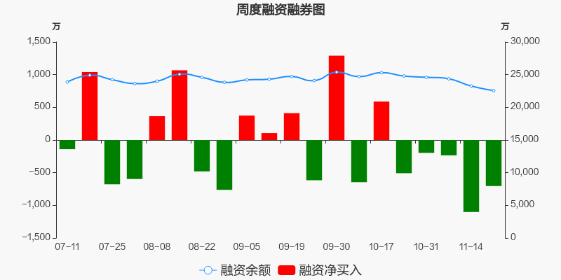 天宜新材本周(2025/11/17-2025/11/21)累计跌幅达14.66%,截至11月21日最新股价报收5.47元。从增量上来看,11月17日至11月21日融资买入交易规模5243.12万元,融资偿还规模5947.51万元,期内融资净偿还704.38万元。从存量上来看,截止11月23日,天宜新材融资融券余额2.26亿元,其中融资余额规模2.26亿元,融券余额规模22.67万元。