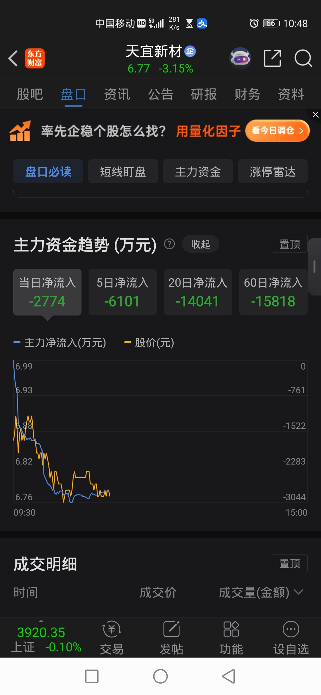 $天宜新材(SH688033)$ 主力资金一直在出逃,不可能涨上去!