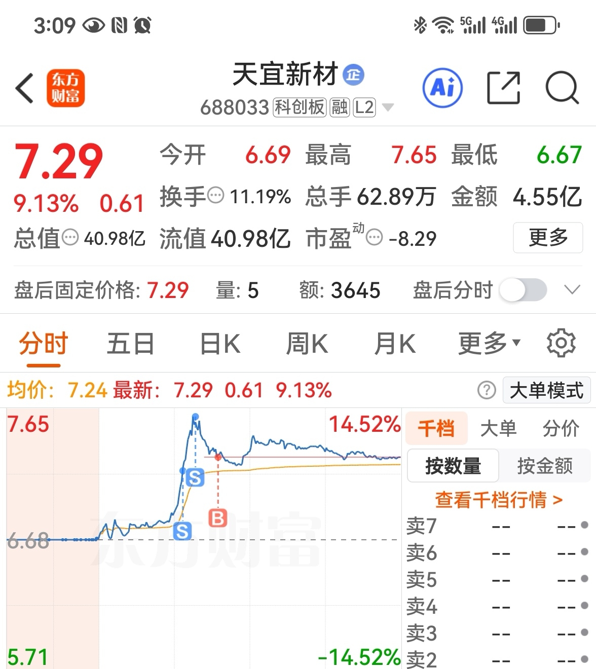 $天宜新材(SH688033)$ 昨天市场情绪冰点后,今天如期迎来修复!市场永远在波动,没有人能买在最低点、卖在最高点。我们能做的,是在相对安全的位置分批布局,在趋势出来之前耐心持有,在风险变大时及时退出。