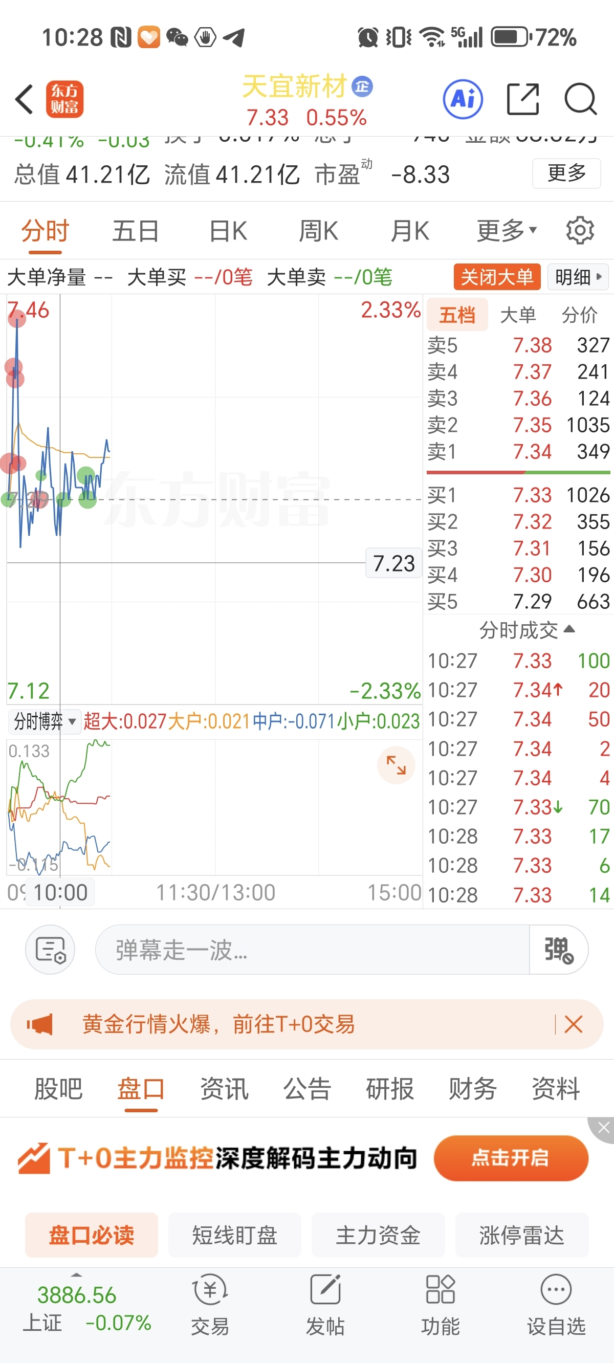 $天宜新材(SH688033)$ 哈哈,主力哥如约而至!你们没机会了!十点钟主力哥就在拆小单慢慢买入了,现在按捺不住性子了,很快就要一飞冲天!今天收盘十个点大肉