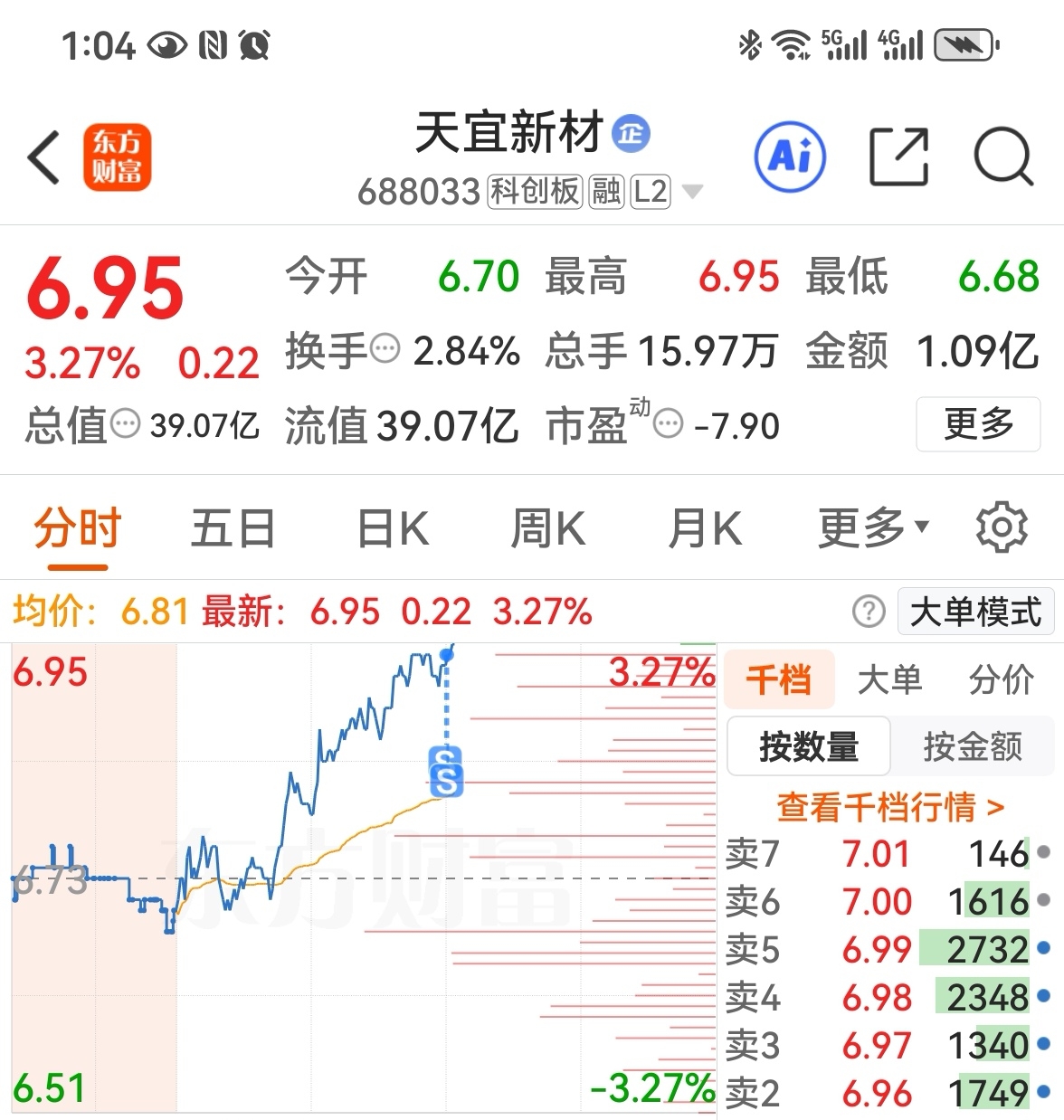 $天宜新材(SH688033)$ 如果你想股票涨,那就卖一点点。
